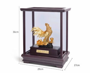 Tượng Gà Trống Phong Thủy Dát Vàng 24K là vật phẩm trang trí cao cấp mang vẻ đẹp sang trọng và ý nghĩa phong thủy tốt lành. Hình ảnh gà trống mạnh mẽ, uy nghi kết hợp với lớp dát vàng tinh xảo tạo nên điểm nhấn nổi bật cho không gian phòng khách, phòng làm việc hoặc văn phòng.