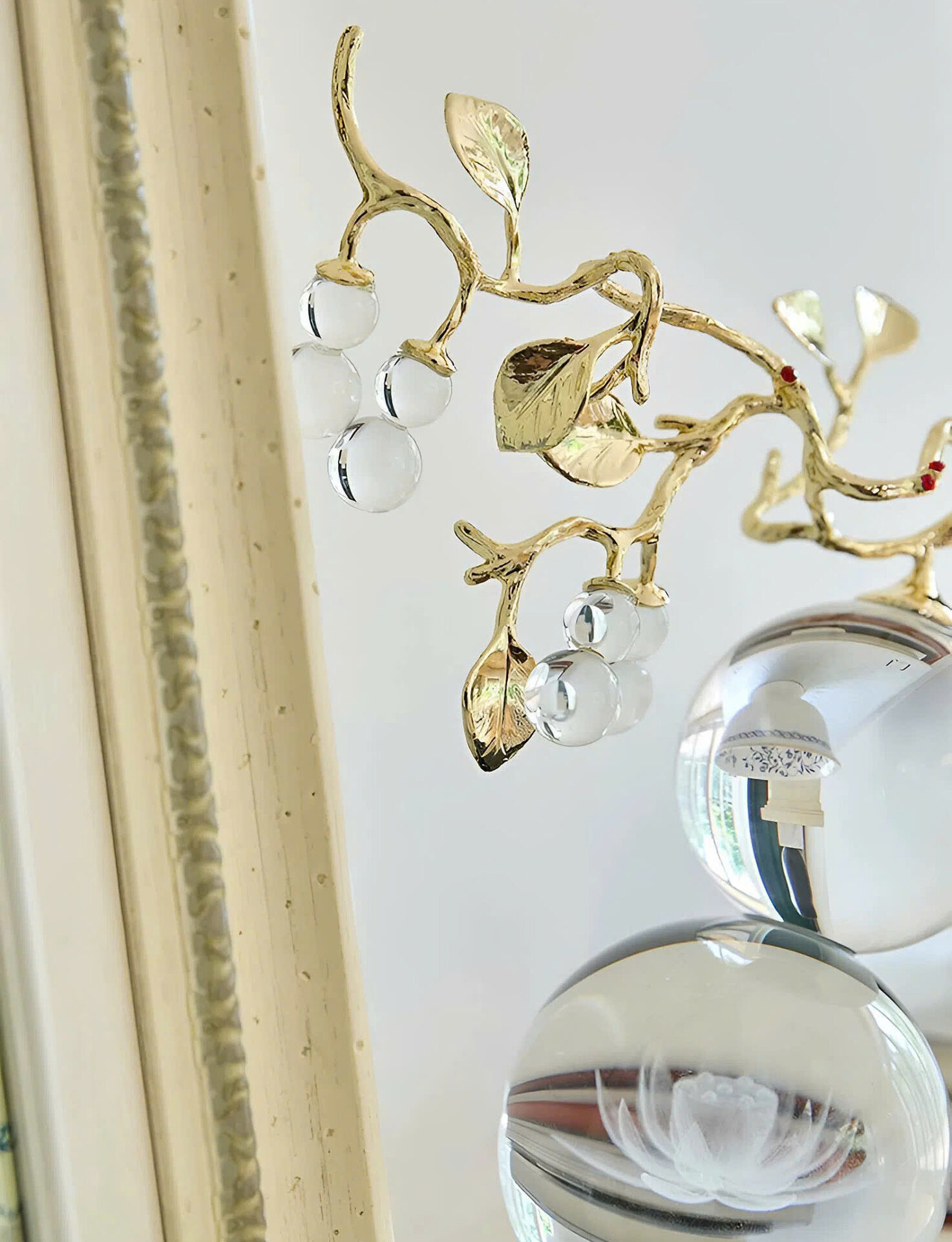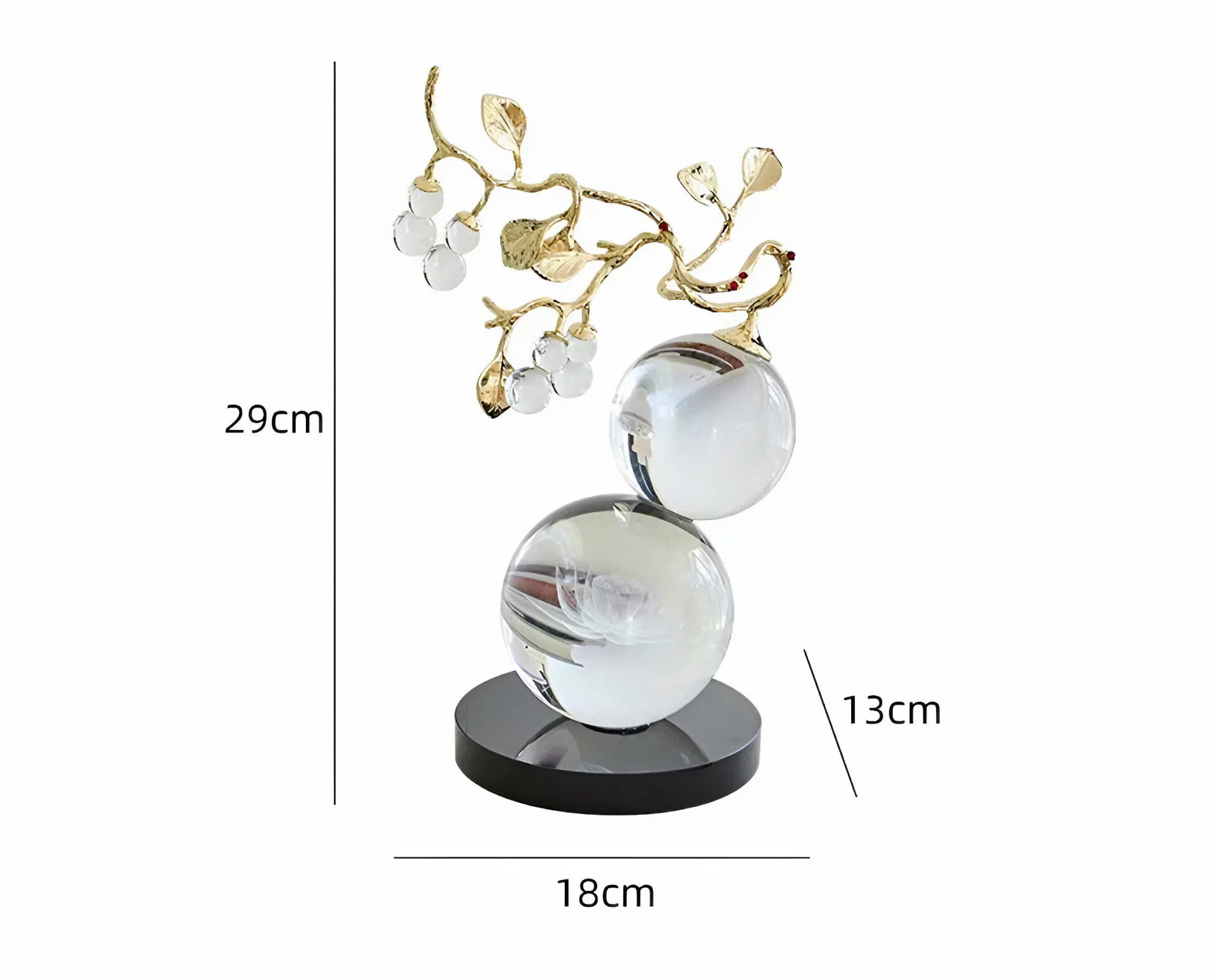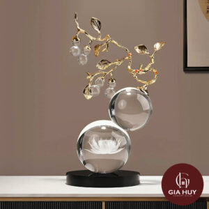 Hồ lô Pha lê hoa Sen gây ấn tượng bởi thiết kế tinh xảo, nơi nghệ thuật được thể hiện trong từng chi tiết nhỏ. Phần cành hợp kim mạ vàng được uốn lượn mềm mại, kết hợp hài hòa với những quả hồ lô pha lê trong suốt, tạo nên tổng thể thanh thoát và sang trọng. Màu sắc tươi sáng cùng các đường nét chế tác tinh tế giúp sản phẩm trở nên sống động, giàu tính thẩm mỹ, trong khi từng chi tiết đều được hoàn thiện tỉ mỉ, mang lại cảm giác cao cấp và chỉn chu. Điểm nhấn nổi bật nằm ở khối cầu pha lê lớn phía dưới, nơi hình ảnh hoa sen được chạm khắc tinh xảo bên trong; từng cánh hoa hiện lên rõ nét, mềm mại và đầy sức sống, tựa như một tác phẩm nghệ thuật thu nhỏ đầy cuốn hút.